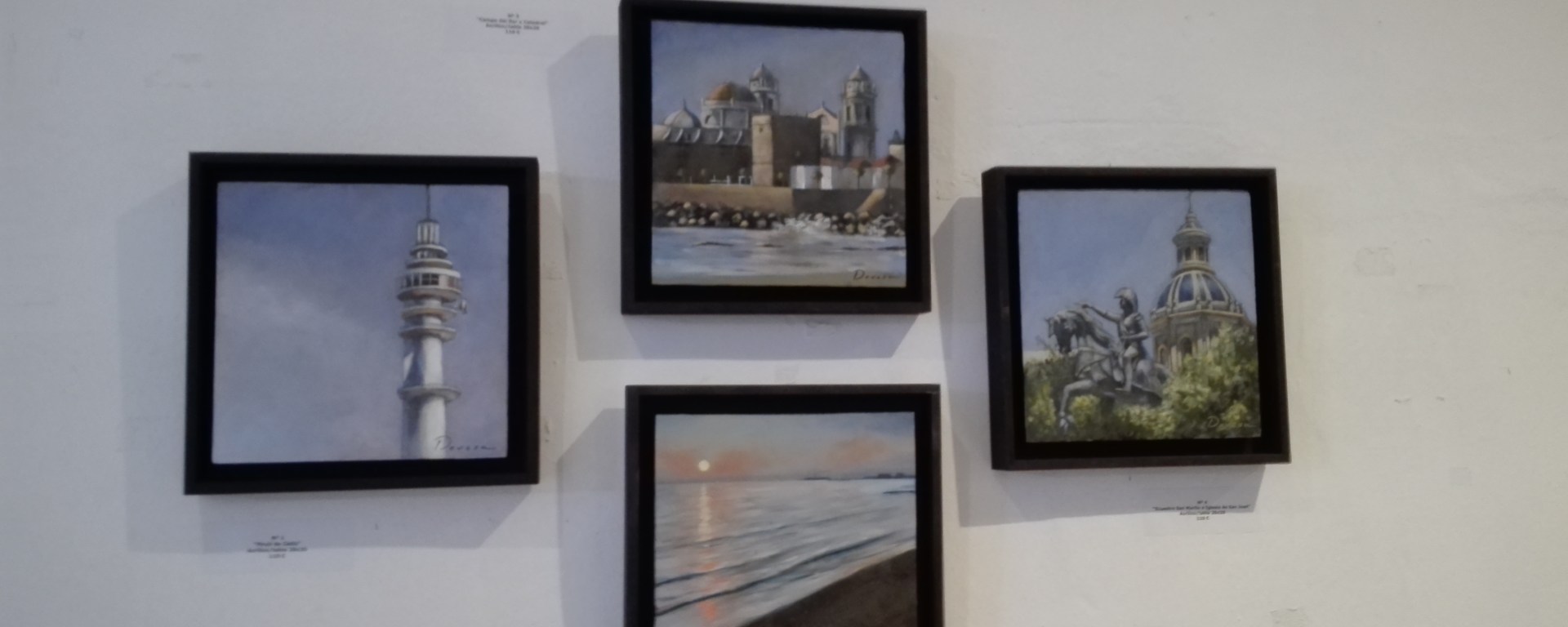 El artista gaditano nos muestra varios cuadros suyos con la posibilidad de poder adquirirlos en el caso de que algunos de los asistentes, esté interesado.