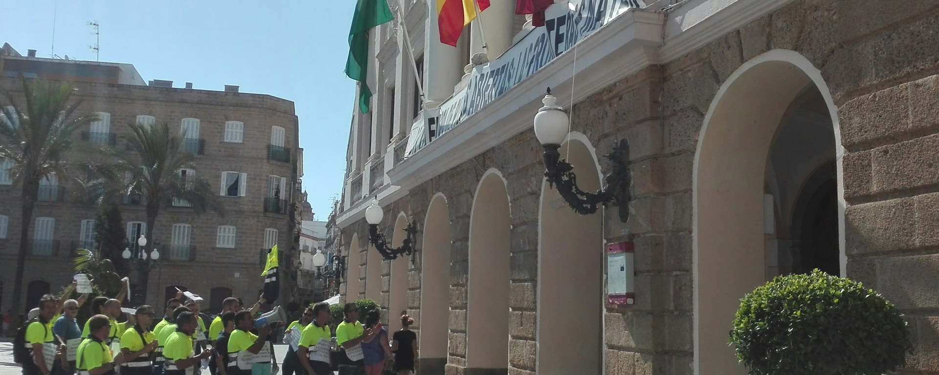 Al grito de «Si esto no se arregla, la Regata llena mierda» y «Basta ya de ilegalidad«, los empleados de Fomento de Construcciones y Contratas (FCC) se han concentrado esta mañana frente al Ayuntamiento para denunciar que sus contratos llevan más de 15 años en fraude de ley y reclaman que se regularice su situación. De no ser así, amenazan con una huelga que haría peligrar la limpieza para la Regata de finales de este mes.