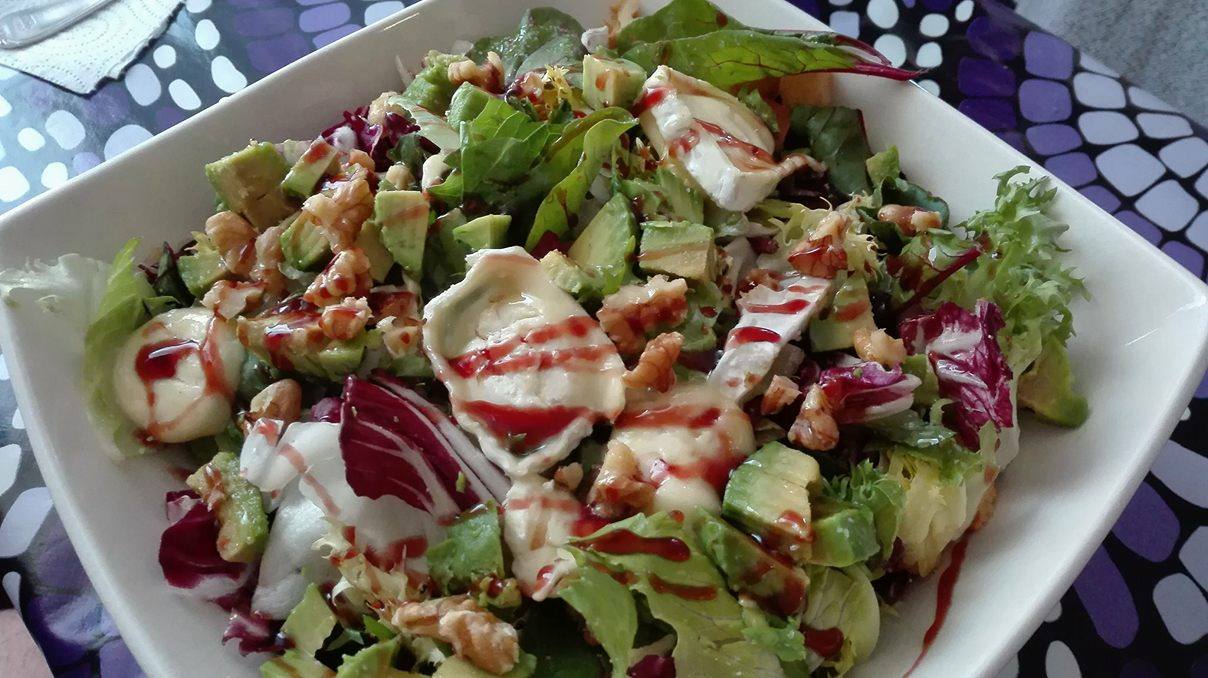 ¿Hay algo mejor que una ensalada cuando quieres sentir que comes sano no abusando de la carne y las frituras? Era lunes y los lunes siempre se levanta uno con esa mala conciencia de haberse pasado durante el fin de semana. Por eso tenía claro que no comería nada de carne ni arroz ni pasta. Así surgió esta ensalada que desde luego voy a hacerla más a menudo. Como era inventada, le he puesto el nombre del blog.