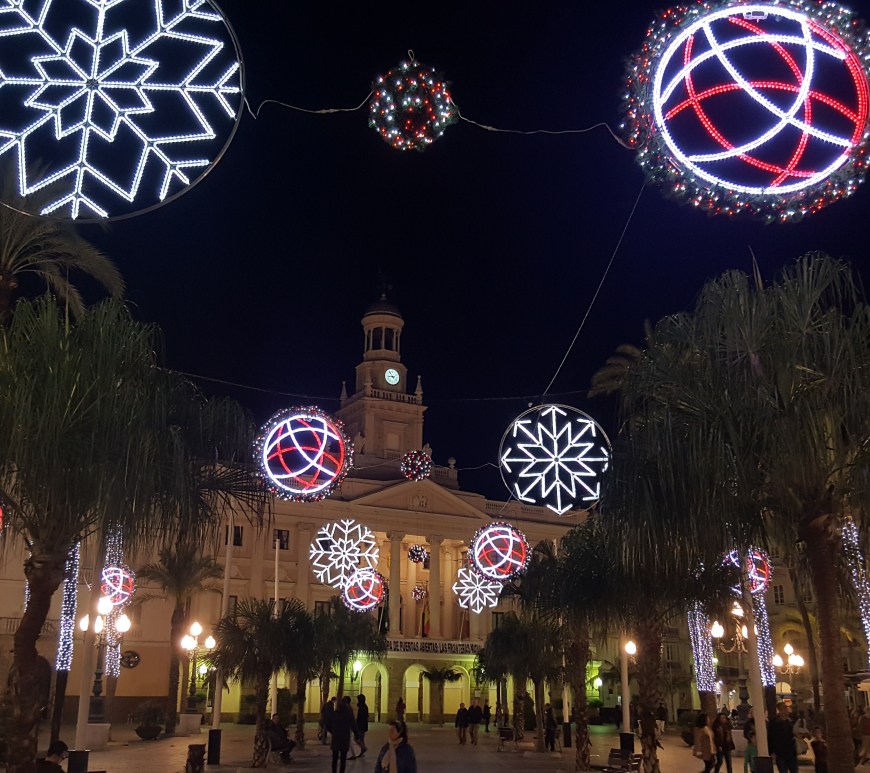 Así luce la primera mitad del alumbrado navideño de Cádiz