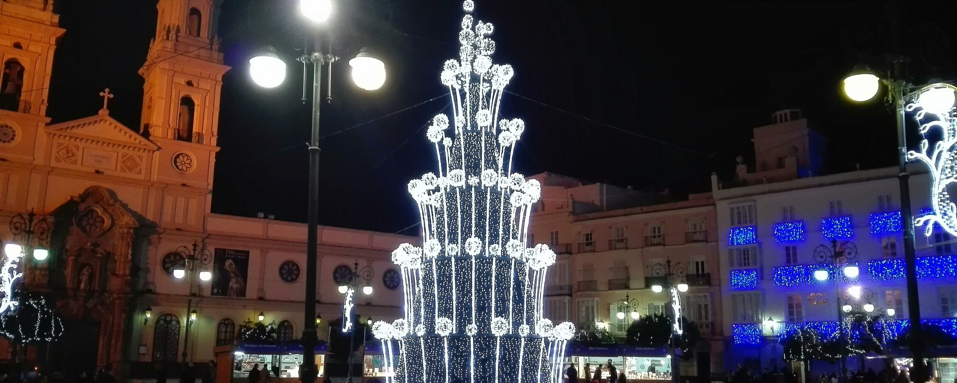 Cádiz ya está iluminada. Y eso es un hecho. Las plazas más significativas de la ciudad como San Juan de Dios o San Antonio lucen este año con grandes árboles. Y las calles, aquellas que en un principio no iban a iluminarse también han sido adornadas para la ocasión. Incluso la Avenida ha sido ya engalanada para la Navidad.