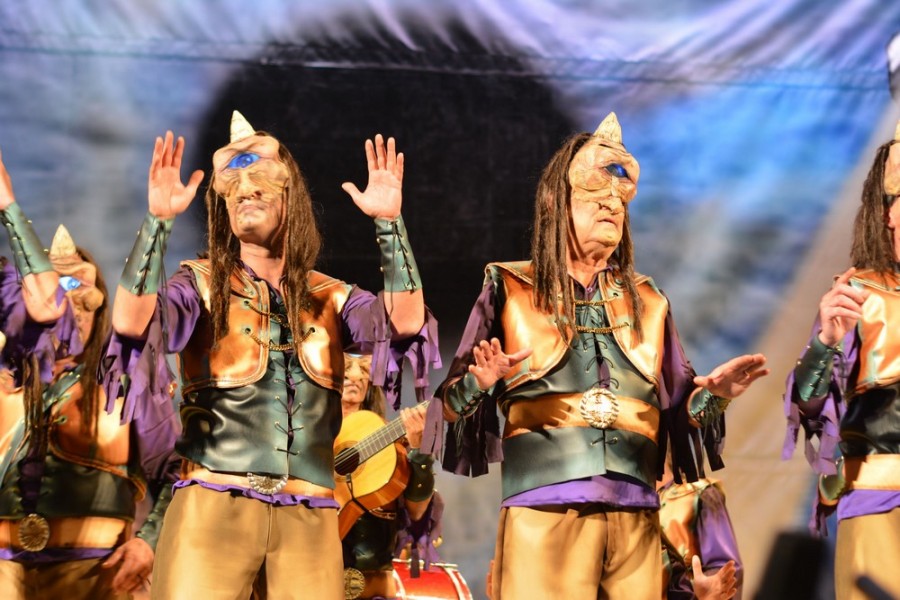 Hay gente con mucha mardá en Cádiz que ya decían anoche que a Pedro el de Los Majaras le habían echado un mal de ojo. Se referían a su comparsa y en relación a un tipo que desde luego no desató los elogios del respetable precisamente aunque sí la estupefacción de quienes lo vimos. La comparsa del pregonero que volvía a concursar tras un año de descanso se presentan con EL OJO DE CAI con un tipo «raro raro raro». Cosa más incomoda joe. Van de cíclopes en busca del Faro de San Sebastián aunque a simple vista parecían iluminatis. Pasodobles con denuncia social como el primero dedicado a EEUU en los que es irónico que se encarguen de velar por la paz y se dediquen a vender armas. El segundo a algunas religiones que obligan a menores a casarse. Estribillo resultón con el sello portuense. El público les aplaude y corea «pregonero» incluso pero a Pedro el de Los Majaras le debe parecer poco y se atreve a pedir que se pongan de pie: «Ponerse en pie ante el pregonero, carajo«. No sé, con lo bonito que es que eso fluya solo… Lo hace en realidad tal y como explica en la entrevista posterior en Onda Cádiz porque ve al público un tanto frío.