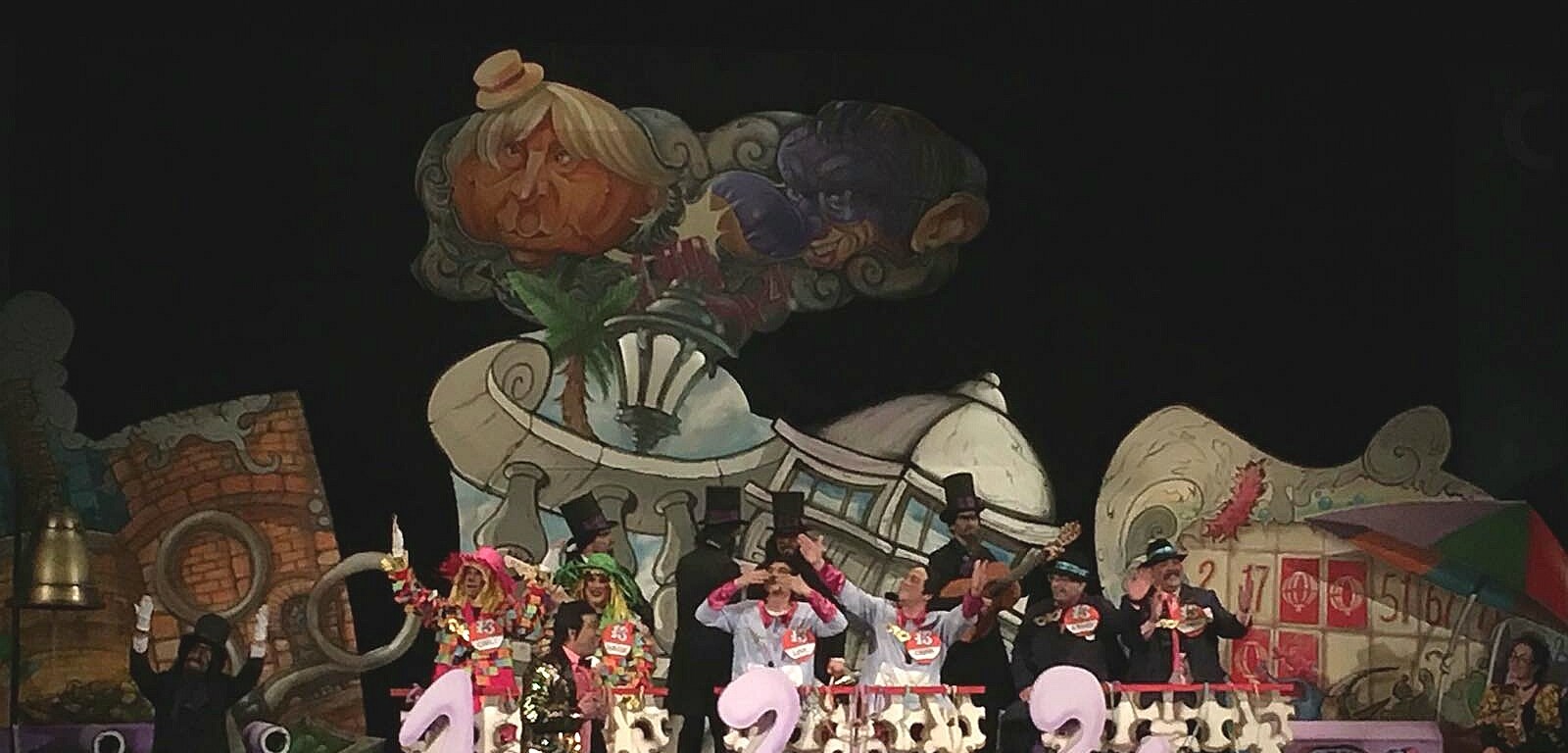 La decimotercera sesión del COAC ha traído sorpresa incluida. La chirigota del Choza que el año pasado se tomaba un descanso ha vuelto con una idea arriesgada pero a juzgar por el resultado y la respuesta del público, muy acertada. El 1,2,3… el concurso de los concursos como hilo conductor. Por eso vemos en el forillo a una Ruperta con to la cara de Teófila y al alcalde reencarnado en la bota Botilde. La azafata vestida de piconera con sus míticas gafas es clavá a Ana Angeles García, contable en la primera etapa de Kiko Ledgard y el Don Cicuta super conseguido también. La puesta en escena con sets de las preguntas la rematan con unos concursantes muy familiares: Subiela y Carlis de «Calabazas», Love y Cabra de «Una Chirigota con clase» y Julio Pardo y Antonio Rivas.