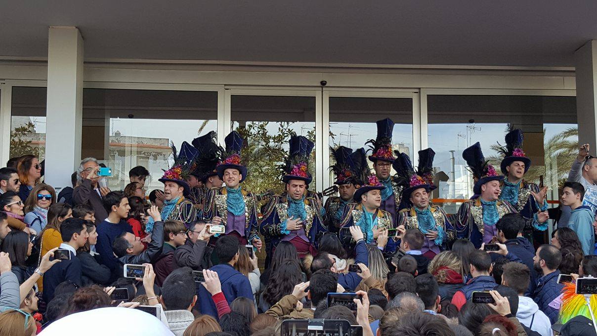 El lunes de Carnaval se saldó con los habituales carruseles de coros por Mentidero, Mercado y Plaza de Mina. Allí mismo pudimos ver a coros como el de Luis Rivero, primer premio este año, el de Julio Pardo o el de su hija Lucía. Las chirigotas y comparsas paseaban por Cádiz regalando sus repertorios al respetables ante un tumulto de buenos aficionados: Así «Esta Chirigota cae bien» pudimos verla en calle Ancha, a la Eternidad de Antonio Martínez Ares en el Festival benéfico de Mentidero y en las escaleras de la Facultad de Medicina en la plaza Flagela que dejó con la boca abierta a todo su numeroso público. Que buen ratito el echado con ellos. Cantaron además coplas de otros años: Doremifasoleando, Los Cobardes, Los Piratas… y Jesús Bienvenido que estuvo entre el Oratorio y la calle Solano.