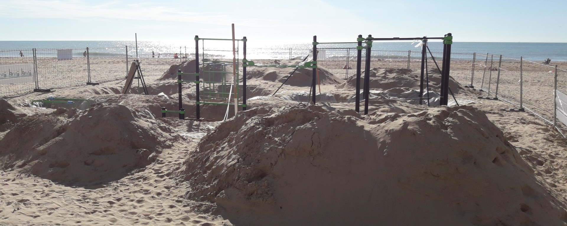 El nuevo parque deportivo en la playa de La Victoria, está en la arena y no en el paseo como el mencionado anteriormente. Una inversión de 20.000 euros para una obra que se supone estará lista en un mes.