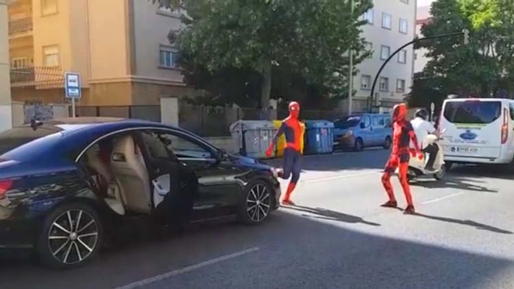 Ajú ajú. El Levante ya está en auge y eso no falla. Debe ser por eso que ayer corrió por las redes un vídeo que muestra de nuevo la singularidad de nuestra ciudad. En plena Avenida, dos hombres vestidos de los personas de cómics Spiderman y Deadpool se salían del coche para bailar en medio de la carretera ante el asombro de los que andaban por allí y las posteriores risas.