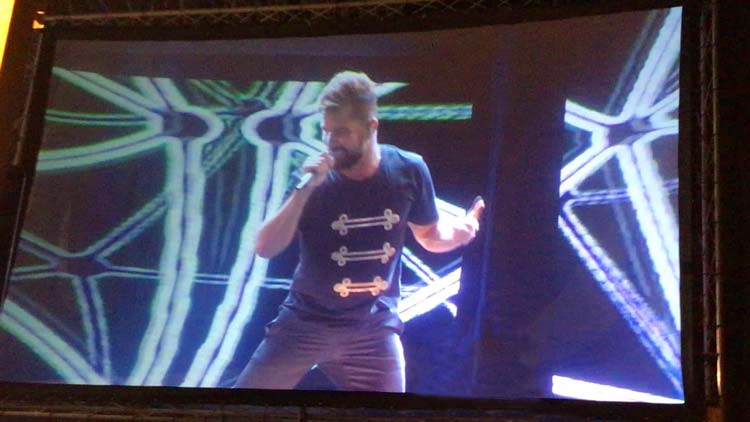 No fue hasta las 22.33 que la voz de Ricky Martín al ritmo de la mítica y ya lejana María sonó, aunque he de confesaros no con demasiada fuerza. Tras una larga gira, la voz del puertoriqueño sonó con algunos tonos menos pero eso sí, entregándose al público desde el primer momento. Hasta diez minutos seguidos continuó cantando antes de saludar a los presentes con el clásico: «Buenas noches, Cádiz«. La tacita de plata bailó dentro y fuera del concierto al ritmo de temas tan conocidos como Livin’ la vida loca, She bangs o The cup of life, todas en inglés a pesar de tener su versión en castellano por cierto.