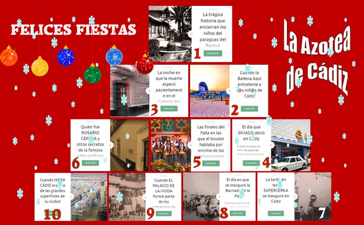 En nuestra cuenta atrás para despedir el año 2018, hemos optado por resumir a través de un árbol de navidad, los artículos sobre Cádiz más leídos. Os doy las gracias muy sinceramente porque hemos llegado a tener cantidades inimaginables de visitas para un blog tan humilde como éste rozando las diez mil en algunos casos. Muchas gracias de verdad! @ManoloDevesa Continúa leyendo #Adió18 | Los diez artículos más leídos de nuestras historias sobre Cádiz