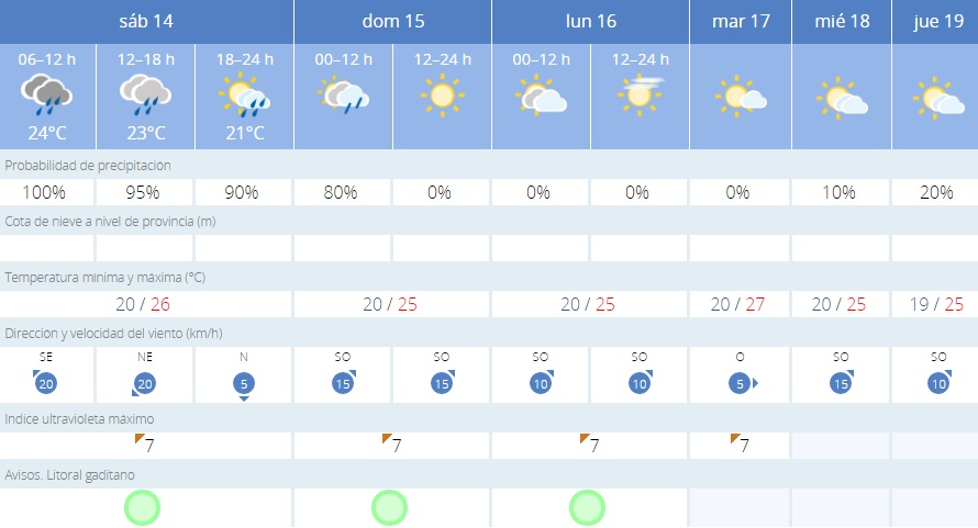 En Cádiz no entrará del todo pero sin duda, la DANA (Depresión Aislada en Niveles Altos) se notará. De hecho ya ayer hicieron aparición la primeras lluvias desde el mes de junio. Hoy sábado las probabilidades de precipitaciones subirán hasta el 95 %. Eso sí, las temperaturas podrán llegar hasta los 26 de máximo y el viento puede alcanzar los 45 kilómetros por hora.