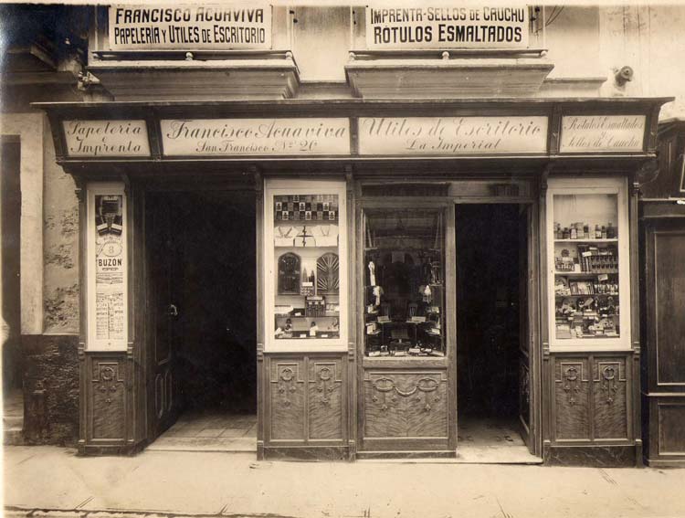 Nuestro periplo por el Cádiz de la década de los año 30 continúa por San Francisco. Justamente donde hoy nos encontramos con el actual «Be Beuty» existía una imprenta papelería llamada La Imperial, donde podía encontrarse útiles de escritorio y en cuya publicidad en la prensa rezaba «viuda de Francisco Acuaviva», el hombre que la creó y cuya mujer, suponemos, se hacía cargo del negocio…