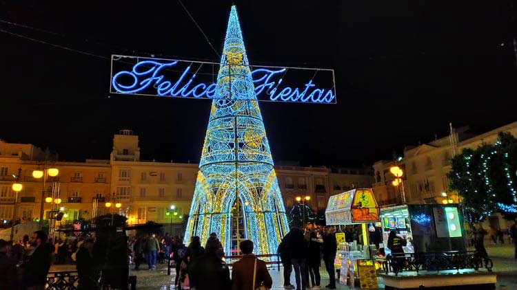 A diferencia del año pasado y cumpliendo con la promesa de que este año no volvería a pasar, Cádiz ha inaugurado esta tarde su alumbrado navideño aprovechando el inicio de campaña del Black Friday con un pequeño acto en la plaza de San Antonio donde se ha instalado una pista de hielo sintética y un tobogán de trineos al que se incorporará en unos días un tren. Los puestos de artesanía donde comprar figuritas para el Belén entre otras cosas se han trasladado a la plaza de la Catedral con el ánimo de que esté todo más repartido. En unos días os mostraremos las luces de más rincones de nuestra ciudad.