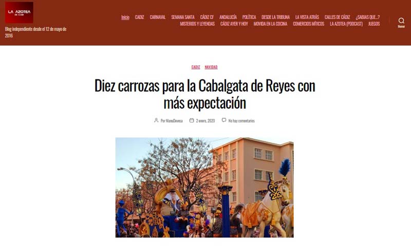 La Cabalgata por la cuál pasearán los Reyes Magos la tarde del cinco de enero por Cádiz y que encarnarán Alejandro Sanz, Antonio Martín y Diego Gonzalez ya tiene recorrido y número de carrozas. Según ha informado hoy la delegada de Cultura y Fiestas, Lola Cazalilla, Sus Majestades saludarán desde el balcón del Ayuntamiento a la ciudadanía el mismo día cinco alrededor de las 14.00 … Continúa leyendo Diez carrozas para la Cabalgata de Reyes con más expectación