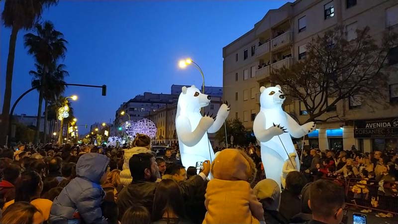 La Cabalgata de Reyes con más expectación de los últimos años salió adelante sin ningún incidente. Con unos minutos de retraso, sobre las seis y cuarto de la tarde, el Cortejo salía del Parque de Eritheya (antiguos Cuarteles Varela) con dirección a San Juan de Dios donde se recogía. Melchor, Gaspar y Baltasar en compañía del Cartero Real y la Estrella de Oriente recorrían las calles de Avenida Andalucía, Cuesta de las Calesas y Avenida del Puerto para asomarse al balcón consistorial de nuevo y dirigirse a todos los niños y niñas presentes.