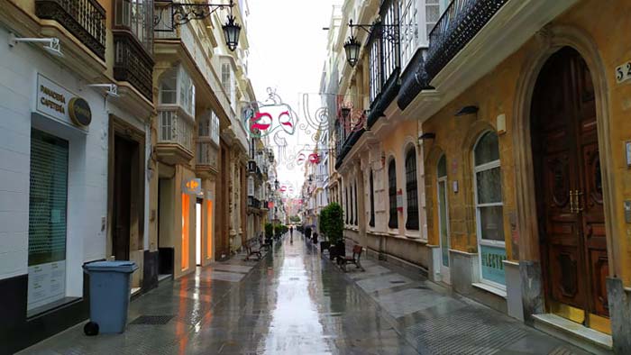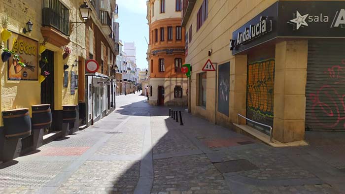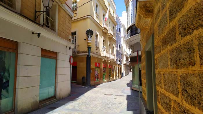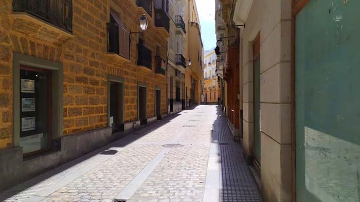 El confinamiento en Cádiz se ha notado especialmente en las calles que rezuman un silencio atronador. En el casco antiguo apenas circulan coches a excepción de los del taxi y la policía. Los días se hacen largos y cada vez costará más quedarse en casa. Sin embargo el pueblo gaditano lo va llevando casi a rajatabla. En la plaza la vida parece detenerse. Aunque con mucho menos público, es donde más personas se pueden ver. Los puestos lo notan y ya han puesto el servicio a domicilio: «Sobre todo porque la gente de Puerta Tierra no vienen hasta aquí y eso se nota» me dice el dependiente de un puesto de frutas. En los supermercados la gente espera guardando la distancia de un metro y medio para entrar en colas enormes que comienzan en la calle. Fuera es ya habitual ver a personas con mascarilla y guantes. ¿Quién lo iba a decir hace solo un mes atrás? Pocos minutos antes de las ocho de la tarde, los balcones de las calles y plazas de la ciudad se abren dispuestos a mostrar su gratitud a través de sonoros aplausos que cada día se torna más en una fiesta con canciones e improvisadas actuaciones. Sanitarios, policías, trabajadores de supermercados… Cada uno aplaude a quien cree que así lo merece. Si durante la mañana es poco es trasiego en la calle, por la tarde noche el parón es casi total. Con la poca gente que trabaja ya en casa, la ciudad es un desierto.