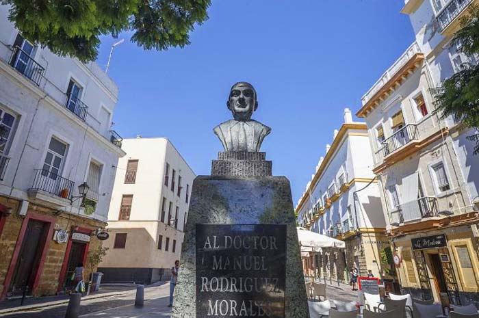 Pero sigamos hablando de la plaza ¿quién es el busto que luce en medio de ella? No es otro que el doctor Manuel Rodríguez Morales, especialista en el aparato digestivo que tenía su consulta en su propia casa, la calle Cervantes. Hasta allí y probablemente por la confianza que les daba Don Manuel se acercaron muchos gaditanos probablemente para saber más la opinión del amigo que del médico. Porque según cuentan no fue la primera ni la última vez que Don Manuel no cobró la visita a algún paciente o incluso lo ayudó económicamente.