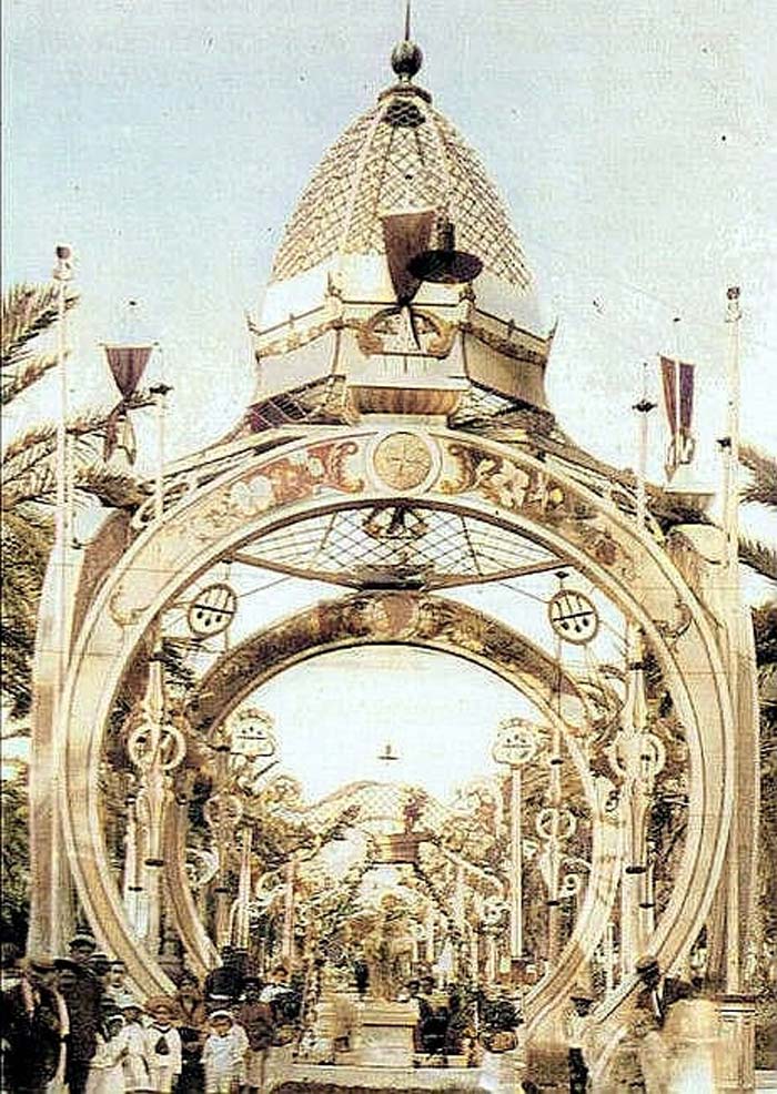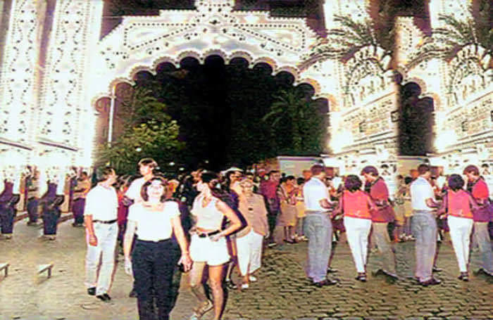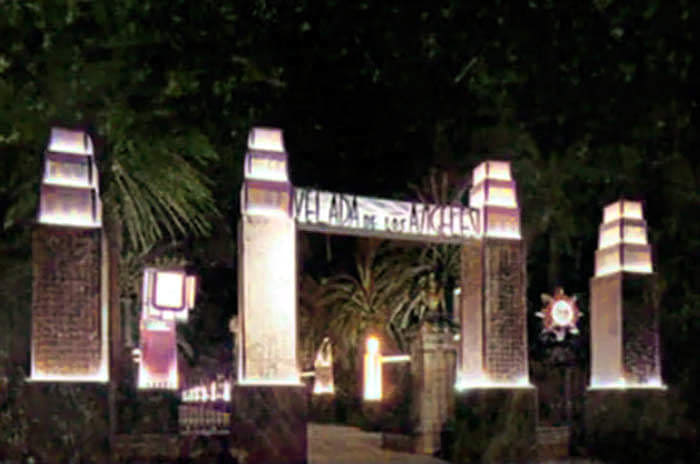 ¿Cuál es el origen de «La Velada de los Ángeles»? Para eso, tendremos que retroceder algunos años más: hasta 1861. Nos situamos en otras de las fiestas con más esplendor de Cádiz en sus tiempos: el Corpus. Debía verle tantas posibilidades que el por entonces alcalde don Juan Valverde, con el objetivo de realzarla mucho más, la extiende aumentando los exornos e instalando en la plaza de Isabel II (Ayuntamiento) y la calle Aduana casetas, cafés, tiendas ambulantes, etc… Como siempre ocurre en nuestra ciudad, la falta de espacio se presenta como un serio problema. Así que al año siguiente se opta por cambiar de lugar trasladándose al paseo de las Delicias. El cambio de ubicación no solo afecta a una decoración más acertada sino también a un cambio en la fecha de su celebración: la primera quincena de agosto.