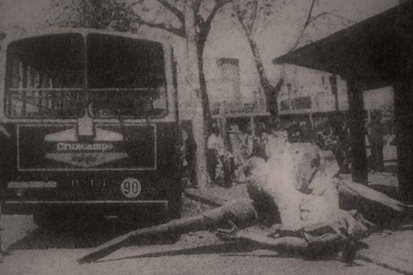 Figúrese. El susto fue morrocotudo. Cuando nos quisimos dar cuenta estábamos en el suelo y además rodeados de gente. Caímos sobre la marquesina que había por entonces en la parada de autobuses para enlazar con el tranvía, que iba pa la playa. Pero bueno, aunque había una docena de personas en la parada, a ninguno les pasó ná. Solo dañamos un autobús. Me acuerdo perfectamente, el 144, que iba de San Juan de Dios a Puntales.
