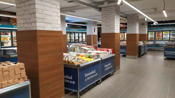 Entrar en el nuevo ALDI de Avenida Andalucía 5 es recordar inevitablemente los tiempos en que en ese mismo local descansaba la sección de oportunidades de unos sobradamente conocidos grandes almacenes. Sin embargo, una vez estás dentro nada tiene que ver. De hecho, el edificio ha sido renovado completamente, eliminando las escaleras mecánicas e incorporando cintas desplazadoras entre las dos plantas además de un ascensor. Además la nueva tienda apuesta por el CO2 como refrigerante, una alternativa más sostenible y eficiente que otras opciones disponibles en el mercado. En este sentido, el establecimiento también ha sido equipado con domótica, hecho que evita pérdidas de género por averías y mejora el funcionamiento de la climatización y el alumbrado.