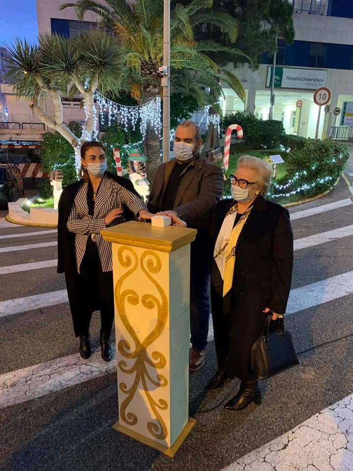 El hospital Puerta del Mar procedió ayer a inaugurar su alumbrado navideño. Con un especial recuerdo y agradecimiento a aquellos que se han enfrentado este año a la lucha contra la pandemia dejándose a veces incluso la vida, el hospital quiso acordarse especialmente de Alfredo Díaz, el auxiliar de farmacia de Guillén Moreno que fallecía a causa de la Covid-19. De hecho fueron su viuda, Marián Gómez, que sí logró superar el virus, su hijo el médico internista Alfredo Díaz, que también se contagió y su hija María Gómez, los encargados de pulsar el interruptor de sin duda las navidades mas difíciles de sus vidas.