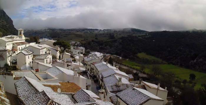 Aunque en estos días una preciosa foto de Grazalema haya recorrido las redes sociales haciendo entender que había nevado, no es cierto. La sierra de Cádiz recibe en estos momentos los primeros copos de nieve que la borrasca Filomena ha repartido por gran parte del país. Por eso esta mañana ya se podían ver los tejados blancos de las casas de Grazalema y Villaluenga del Rosario. Sin embargo en el suelo aun no parecían haber cuajado.