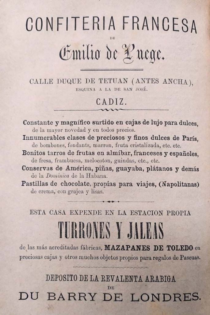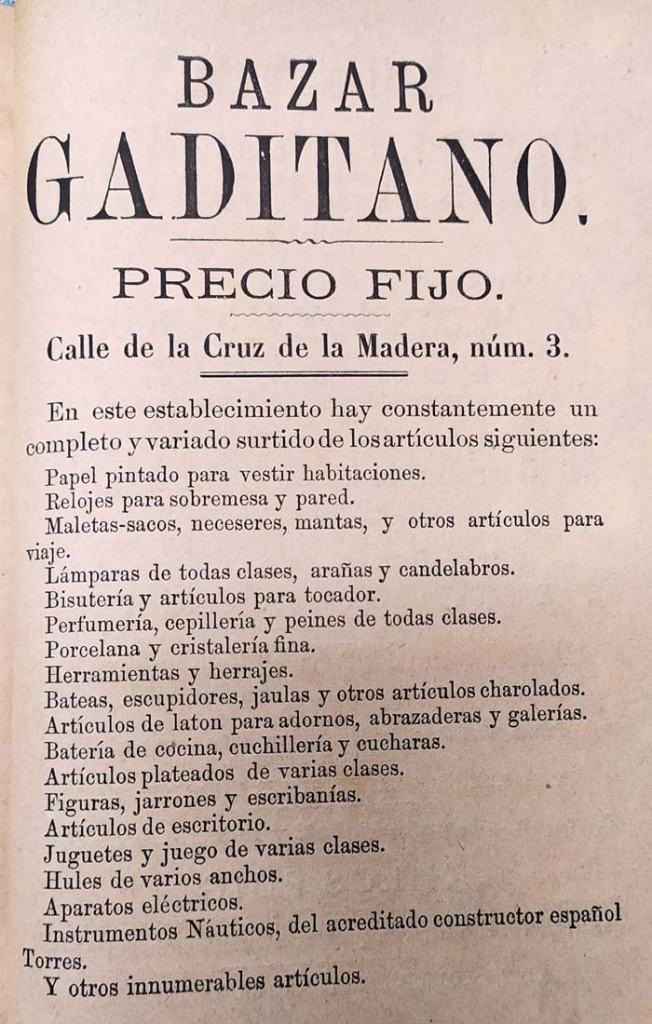 ¡Qué nos gusta ver cómo ha cambiado nuestra ciudad con el tiempo! Lo que es triste es comprobar que Cádiz ha ido perdiendo con el tiempo la fuerza comercial que en su día la caracterizó. Esperemos que el ciclo acabe pronto y la ciudad comience a recibir nuevos negocios que llenen las calles de vida. ¿Me acompañan de compras por el Cádiz de 1873?