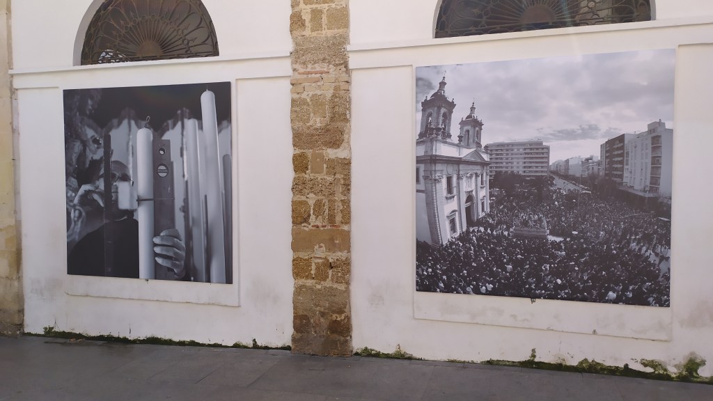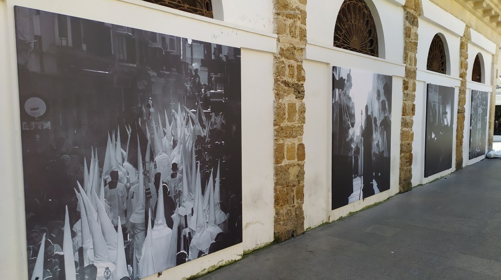 A pocos días para comenzar la Semana Santa, el Mercado Central ya tiene instalada la exposición de trece fotografías que estarán dispuestas en la fachada que da al edificio de Correos. Las fotografías son obra de cuatro fotógrafos gaditanos: José María Reyna, Marcos Piñero, Jesús Patrón y Manuel Llamas. La exposición refleja la fe, la salida, el trabajo, la música, el penitente, en definitiva el ambiente de una cofradía en la calle.