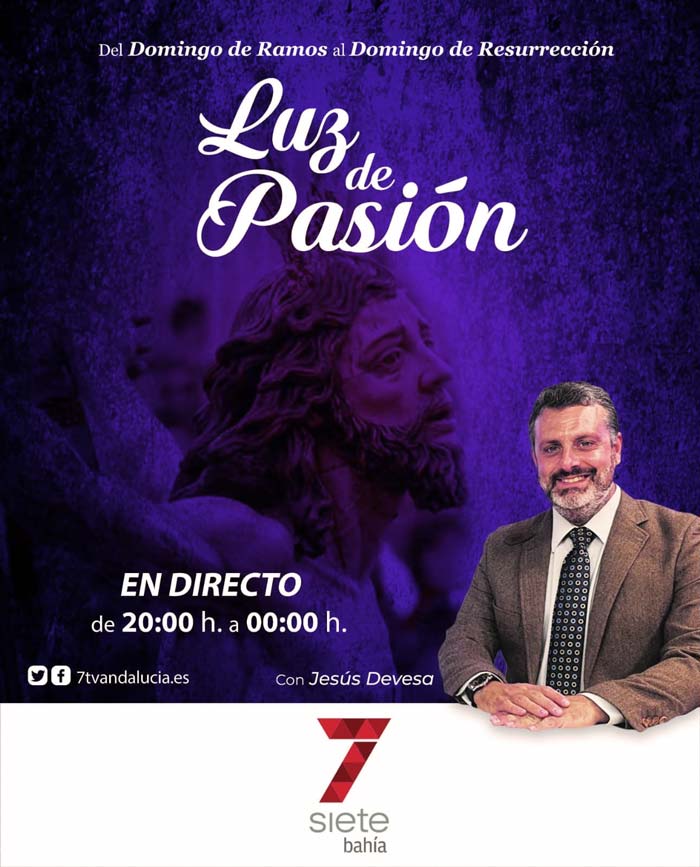 Este domingo 7TV dará comienzo una serie de especiales que llevarán a los espectadores a vivir la Semana Santa de Cádiz de una manera diferente debido a la actual situación sanitaria que impedirá que los desfiles procesionales se lleven a cabo por segundo año consecutivos. Será a través de LUZ DE PASIÓN. El programa se ofrecerá a diario desde el domingo y durante cuatro horas en directo cubrirá los actos que las diferentes hermandades organicen. Además del archivo de años anteriores y nuevos reportajes, el programa recibirá en plató a diferentes invitados relacionados con el mundo cofrade, realizará conexiones en directo con San Fernando, Chiclana y El Puerto y estará pendiente siempre de todo lo que vaya sucediendo a lo largo de estos días.