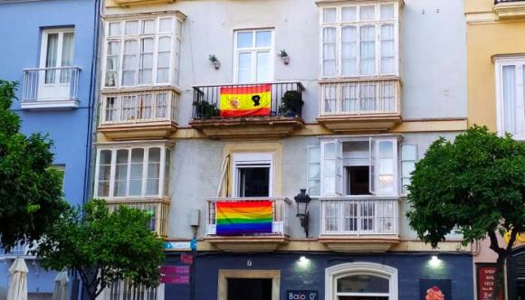 Ayer hubo una imagen que me llamó poderosamente la atención. Me pareció bonito y un excelente ejemplo de la buena convivencia. En la plaza de San Francisco un edificio mostraba dos banderas bien diferentes en sus balcones. En el segundo piso la de España que mostraba el apoyo a un país que ha pasado por una pandemia que ha dejado miles de muertos a su paso. De ahí que también luciese un crespón negro. Justo abajo en el primer piso, la bandera LGTBI reivindicaba sus derechos en la semana del Orgullo.