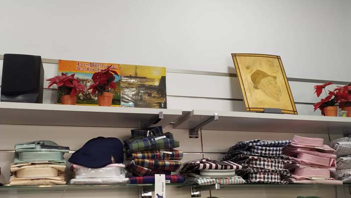 «Yo no me quejo» es lo primero que me dice José Luis Gómez cuando hablamos de la crisis que ha traído el Coronavirus. Será que su tienda no depende tanto del turismo: «Nuestros clientes son más gente de Cádiz y turistas nacionales que extranjeros. Aquí los cruceros poco se notan«. Pepe lleva más de cuarenta años en el oficio y su secreto es adaptarse a los tiempos: «Las modas cambian y no se puede quedar uno to la vida vendiendo trajes chaquetas na más» dice riéndose mientras observo como en su tienda cuelgan camisas hawaianas, politos, zapatillas deportivas, camisetas con motivos de series de moda o míticas películas, bañadores y como no, un amplio surtido de camisas clásicas.