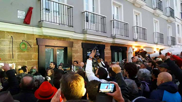 Fue un 13 de noviembre. Por entonces es el hijo de Ramón, José León de Carranza quien gobierna la ciudad desde hace poco más de un año. Lo que hace más fácil y comprensible el cambio. Aquel día el ministro de Obras Públicas, José María Fernández Ladreda, es el encargado de descubrir la lápida mármol ubicada en la fachada de la Biblioteca Provincial que lleva el nombre del antiguo alcalde de Cádiz, Ramón de Carranza y que sustituirá a la antigua calle de la Aduana. Al acto acude hasta dicho paseo la Corporación Municipal bajo mazas. El primer teniente de alcalde Antonio González Tánago, se encarga de leer un discurso donde justifica el homenaje al alcalde antes de que Ladreda descubra la placa en medio de un acto que cuenta con los habituales curiosos que se acercan hasta allí y que no dudan en aplaudir el gesto. El acto acaba con un emotivo abrazo entre el ministro y el hijo del alcalde, Marqués de Villapesadilla.