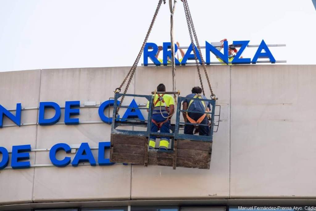 Una vez aprobada la nueva denominación y en cumplimiento de la Ley de Memoria Histórica y la Ley de Memoria Democrática, el Ayuntamiento de Cádiz ha procedido a retirar en la mañana de hoy el nombre de Ramón de Carranza del estadio que a partir de ahora se llamará ‘Nuevo Mirandilla’.