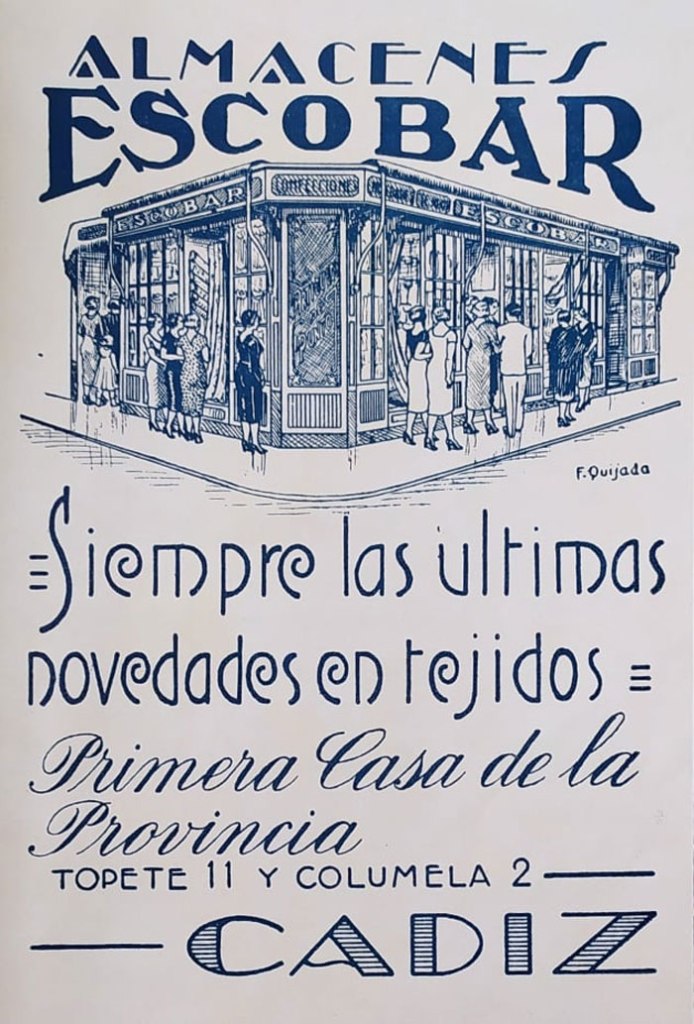 Hacía tiempo que no utilizaba mi particular máquina del tiempo. Esa que me hace viajar por el Cádiz de hace unas décadas. Hoy le he pedido al chófer de mi nave particular que me lleve al Cádiz de 1950, el año en que Matías Retes, Rosales y Marrero empataban en el concurso de coros en el Gran Teatro Falla, la hija del dictador Franco se casaba con el marqués de Villaverde y Barbate añadía a su nombre el de Franco. Vale, a lo mejor las dos últimas noticias no invitan a viajar a aquel año pero todo sea por ver como nuestra ciudad por entonces y entrar en algunos de sus comercios. Allá vamos!
