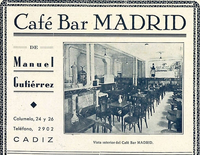 Pues nos vamos a quedar en Columela esquina con Cánovas del Castillo. Ahí se encontraba el Bar Madrid, un bar con una especial vinculación al Cádiz CF.