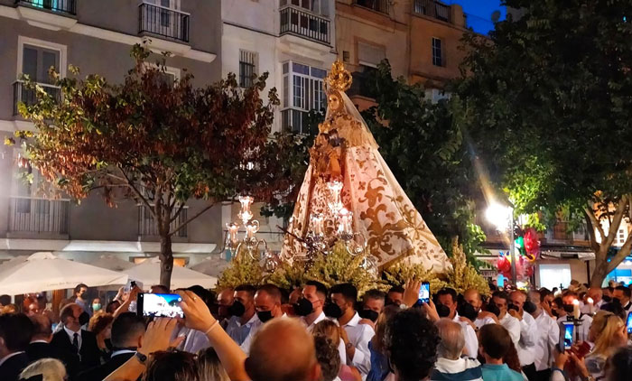 Hoy el incienso ha vuelto a llenar por fin las calles de ese olor tan especial. Los gaditanos han vivido la primera procesión tras 19 meses del comienzo de la pandemia del Coronavirus y había ganas. No lo digo yo. Lo dicen las cientos de personas que han esperado en cada esquina el paso de la Virgen del Rosario. Parejas, pandillas o familias dispuestas a disfrutar de un día en el que de repente escenas que ya se extrañaban al no producirse desde hace algún tiempo, parecía que la habíamos visto ayer mismo. Personas colocadas en el monumento de Moret para ver de cerca a la Patrona, las filas de la Banda del Rosario de Cádiz, móviles y cámaras en alto acribillando a la Virgen a fotografías y esperas de niños o adultos que desesperan ante las habituales paradas del cortejo. En realidad no creo que entre el público congregado allí hubiese solo fieles. También estaban aquellos que respetan los cortejos como parte de una tradición que forma parte de la cultura y la historia de su ciudad. Eso, en los tiempos que corren, es algo a tener en cuenta.