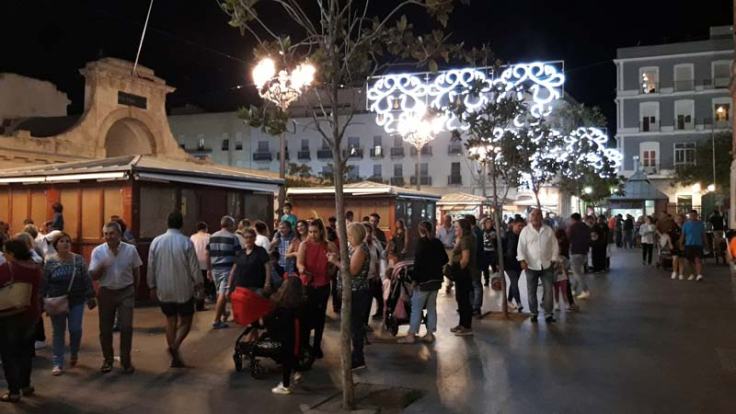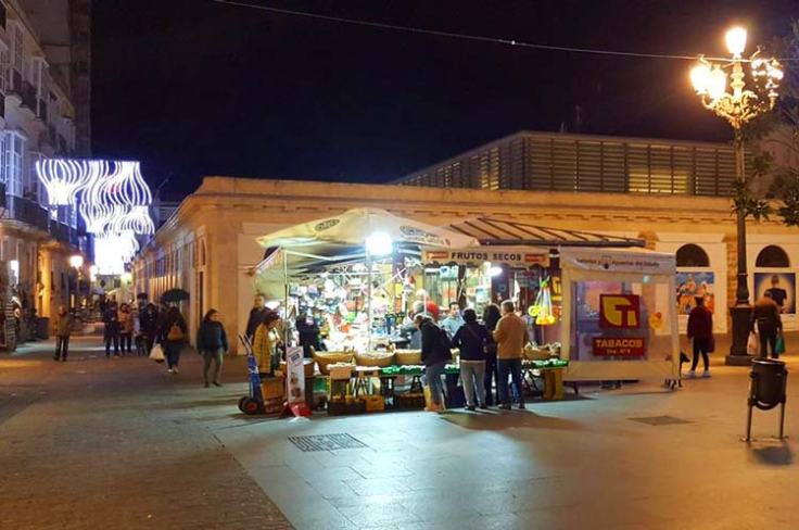 Es en 1876, cuando la Comisión Municipal del mercado público, en la plaza de La Libertad, decide adornar los puestos, la plaza y sus alrededores. Incluso se instala un alumbrado de gas que llama la atención de todos los gaditanos. Las puertas se engalanan. Hay farolillos y banderas a lo largo y ancho de la plaza. Por entonces hay setenta y dos puestos. Todo este derroche decorativo provoca la presencia de un tumulto de gaditanos que acuden en masa para comprar los alimentos que allí se exponen. El ambiente es absolutamente fiestero e incluso en la plaza Guerra Jiménez se organiza un baile que ameniza una banda de música y que dura hasta bien entrada la noche.