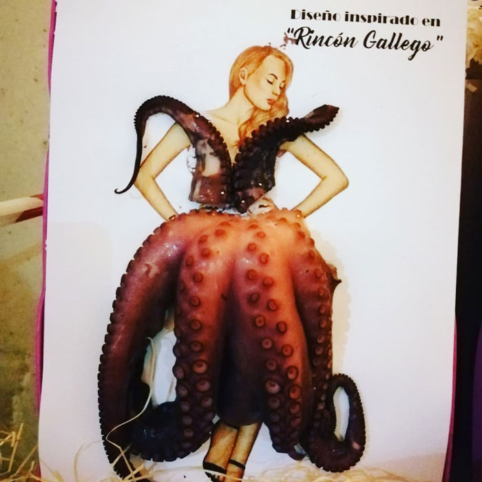 Finalmente el puesto de pinchos vascos Aúpa Kadi sorprendió al público con una especie de pase de modelos diseñados con tapas a base de sardinas, queso, tortillitas de camarones o incluso un pulpo. Una idea muy original montada por la publicista Rocío Bernabé.