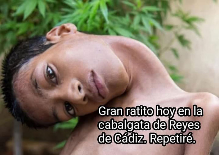 La Cabalgata de los Reyes Magos en Cádiz no solo ha despertado los nervios de los más pequeños sino la guasa de los mayores a raíz de algunos de los muñecos que han desfilado por la misma. En concreto un osito polar ha sido la estrella de la Cabalgata por el incidente que ha sufrido: la cabeza se había ladeado completamente dando lugar a los más ingeniosos comentarios. Aquí tienen algunos de ellos. Geniales.