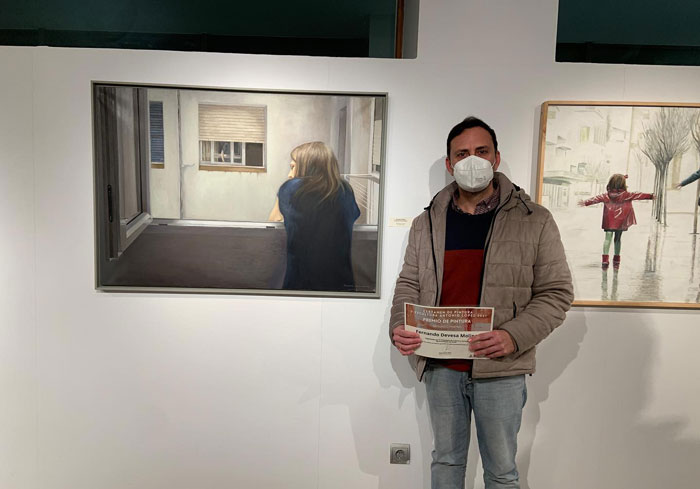 El nombre de Cádiz ha sonado en Madrid esta semana y más concretamente en Pinto gracias a que el gaditano Fernando Devesa Molina, ha sido premiado en el Certamen de pintura y escultura «Antonio López» donde el conocido pintor forma parte del jurado. Fernando con una pintura en la que aparece su mujer Esther ha conseguido llevarse el segundo premio de un Certamen donde participaban unas trescientas obras. Todo un mérito desde luego. Desde sus redes sociales Fernando ha querido agradecer el premio dando las gracias al propio certamen, al alcalde de Pinto Juan Diego Ortiz González, a Jose Gabriel, Presidente de la Asociación Española de Pintores y Escultores, «a mis padres, hermanos, cuñados, a mi querida mujer (protagonista de la obra premiada), a mis hijas Noelia y Rosa y a todos los amigos que se alegran y me animan en todo este mundo tan bonito. Este reconocimiento va por todos ellos» ha dicho.