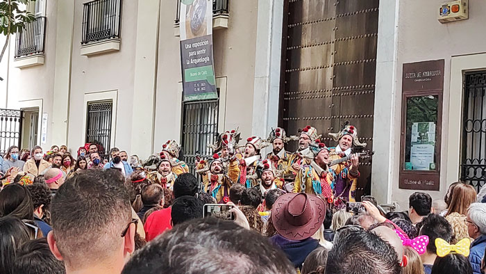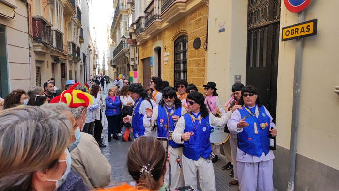 El segundo día del Carnaval no oficial que se está celebrando en la capital desde ayer sábado ha transcurrido con mucho público en líneas generales aunque no como años anteriores. Es lógico también. Hablamos de un carnaval en la calle sin concursos de coplas en los tablaos, sin carrusel de coros, sin Cabalgata ni actos oficiales de los que logran aunar a mucha gente. Un carnaval más relajado y desahogado sin tantas aglomeraciones. Con sus buenos ratitos de coplas y diversión pero con grandes ausencias como la de los coros, que son los auténticos reyes del fin de semana en la calle.