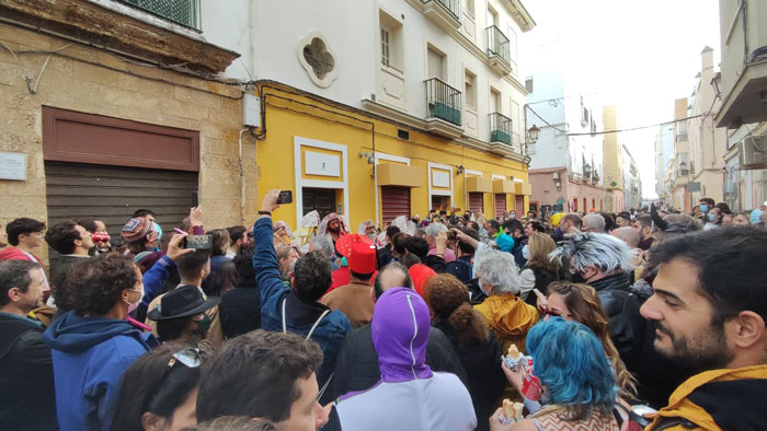 Después de un año sin carnaval y en medio del polémico cambio de fechas que ha hecho que nos quedemos sin concurso y sin programa oficial en febrero, las coplas de las agrupaciones ilegales volvieron a llenar las calles del centro en la jornada de ayer sábado. A partir de las dos de la tarde, el centro comenzaba a llenarse de un público que disfrazado, se disponían a vivir el carnaval aunque fuese de forma ilegal. La plaza de las Flores, la plaza de Mina o la calle de la Palma se llenaban poco a poco gracias a los romanceros y agrupaciones que soltaban sus coplas provocando las risas de los presentes. El covid, las mascarillas o el Presidente de Rusia Vladímir PutinPutin fueron algunos de los temas más recurrentes.