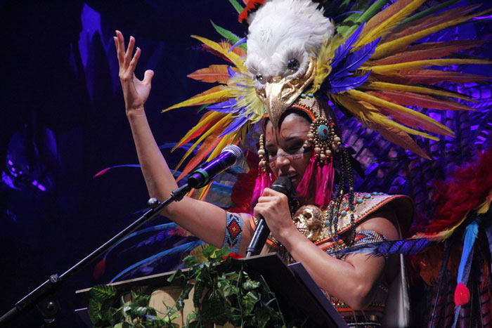Pasadas las diez de la noche, India Martínez aparecía sobre el escenario de San Antonio provocando el aplauso del numeroso público congregado allí. Sin embargo tal y como imaginábamos no estuvo ni mucho menos sola porque por el tablao pasaron desde el Junco pasando por Antonio Martín y el coro de Julio Pardo que aunque apenas se escuchó cantaron la mítica Caleta, Jesús Bienvenido o «Los quinquis» que se arrancaron por el pasodoble de Paco Alba «Barquito». En un espectáculo que rondó las dos de duración dio tiempo también a que El Selu subiese al escenario ataviado como una de sus célebres marujas, a que la chirigota de Manolín Santander cantase algún que otro pasodoble o que la comparsa «Los Renacidos» entonaran el mítico Credo de Juan Carlos Aragón. Gran pregón que sin embargo el pésimo sonido de los invitados provocó que más de uno terminase abandonando San Antonio.