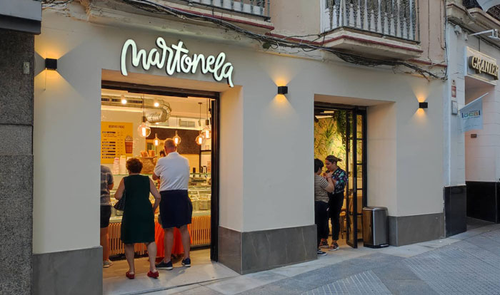 Tras meses readaptando el local que durante mucho tiempo ocupó la mítica firma de ropas Lluch, la calle Ancha cuenta desde hace unos días con una nueva heladería llamada Martonela. En esta nueva apuesta por el helado se pueden degustar desde los tradicionales cucuruchos o tarrinas, hasta gofres, crepes o tortitas recién hechas, ya que también es una cremería. El surtido de productos se amplía además con los vasitos de fruta con helado y topping o los llamados frappelados realizado a partir de una base de granizado de fruta natural y helado a elegir. Por si fuera poco también disponen de batidos frescos elaborados con leche fresca de granja; zumos y granizados naturales; cafés artesanales de tueste natural y tés variados. El pequeño local dispone en su interior de algunas meses para el que quiera degustarlo dentro. ¡Bienvenidos a Cádiz!