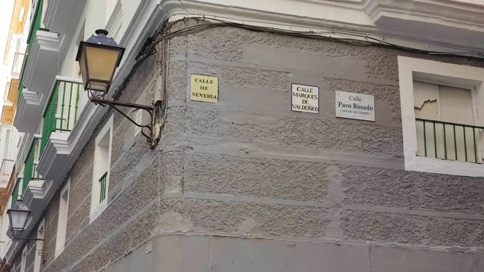 De marqués a Duque. Tiene gracia la cosa. Lo que es no ir con el tiempo justo. Estas vacaciones me ha dado entre otras cosas para pasear por Cádiz y darme cuenta por ejemplo que el inolvidable Paco Rosado tiene su propia calle en la esquina del Marqués de Valdeiñigo donde tantas veces cantó con su antología y donde llegó a tener su propia taberna llamada «La Copla». La calle desde luego aguanta ya tres nombres: la antigua «Calle de Neveria», la de «Marqués de Valdeiñigo» y la de «Calle Paco Rosado (Duque del Guano). Eso sí, ésta última ilegal como muchas de las agrupaciones con las que tanto disfrutó él en la calle.