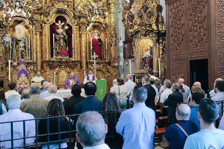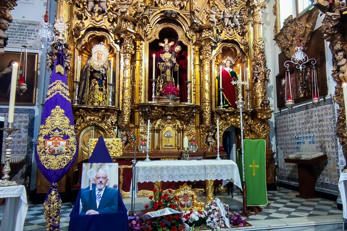 La misa funeral ‘corpore insepulto’ fue oficiada por el Rvdo. Padre Aquiles López Muñoz, Director Espiritual de la corporación, y concelebrada por el Rvdo. Padre Marco Antonio Huelga de la Luz, con el féretro y los restos mortales de Miguel Jurado descansando a los pies de Nuestro Padre Jesús Nazareno y María Santísima de los Dolores, y junto a estos una imagen del propio Mayordomo de la Corporación.