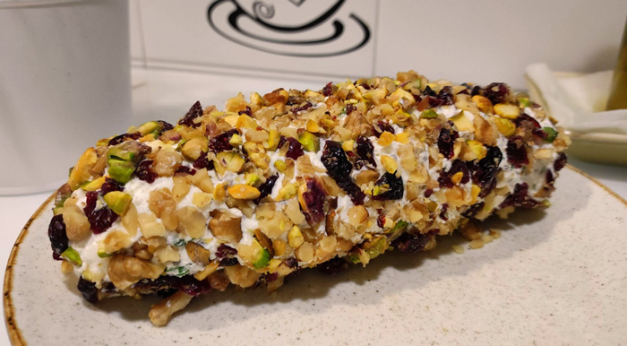 @ManoloDevesa. Me salía por todas partes. Era conectarme a Instagram o Tik tok y mostrarme un aperitivo que desde luego entraba por la vista. Así que como buen amante del queso, este rulo rebozado con frutos secos y arándanos se iba a convertir desde luego en mi aportación culinaria a la nochevieja en casa de mis padres. Así que me puse manos a la obra sorprendiéndome no solo de lo bueno que está sino de lo fácil que es hacerlo. Allá vamos!