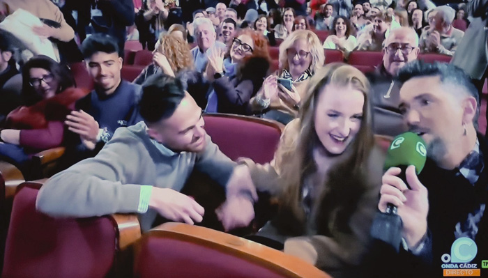 Cualquier sitio vale para demostrar el amor por otra persona. Por eso mismo el Teatro Falla se ha convertido en el escenario escogido por una pareja que en plena retransmisión por parte de Onda Cádiz de la segunda sesión de Clasificatorias del COAC 2023 ha quedado comprometida. Y es que cuando Pepe El Caja en pleno patio de butacas le hacía una entrevista a la … Continúa leyendo ¡Pedida de matrimonio en pleno Falla y con la tele en directo!