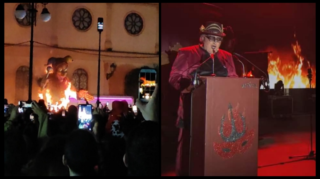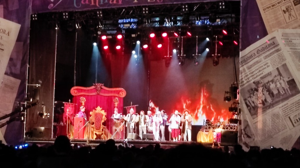 Pues San Antonio fue un año más el escenario, nunca mejor dicho, del pregón del Dios Momo que este año recaía en Fali Mosquera, componente de innumerables comparsas. Fali daba protagonizaba un pregón ágil donde la intervención de Nina Alemania, que hacía de su hija, ponía la nota de humor. Un pregón muy gaditano y carnavalero por donde pasaron un buen número de invitados. Desde el padre de la propia Nina, es decir Antonio Alemania, a la antologia de los Juancojones, Los Viñanos, David Palomar, el coro de Julio Pardo o José Luis García Cossio Selu entre otros. Un pregón que compartió escenario con la antologia que estuvo con Quiñones el sábado en su pregón y que sirvió para recordar algunas de las agrupaciones en las que él ha salido.