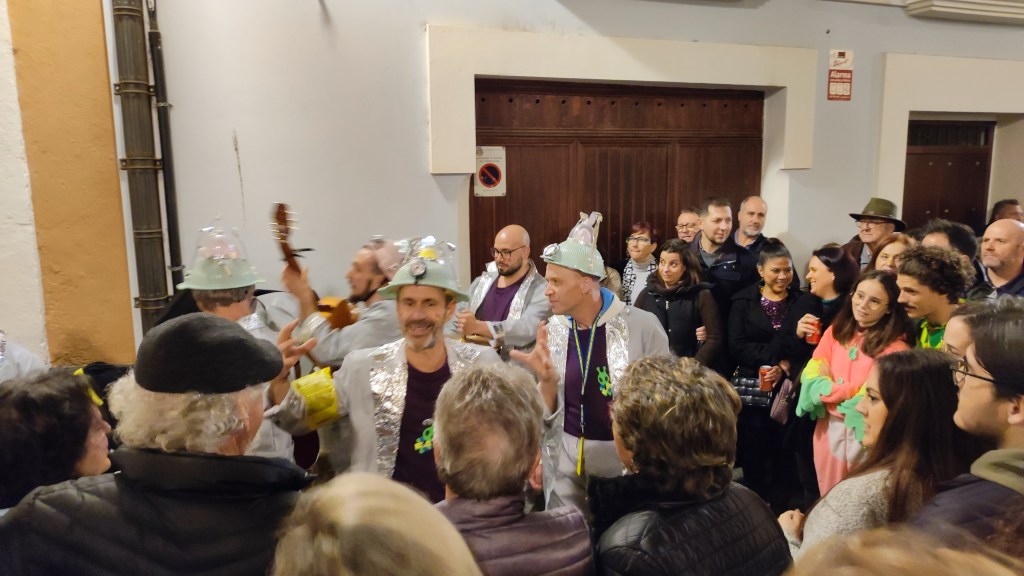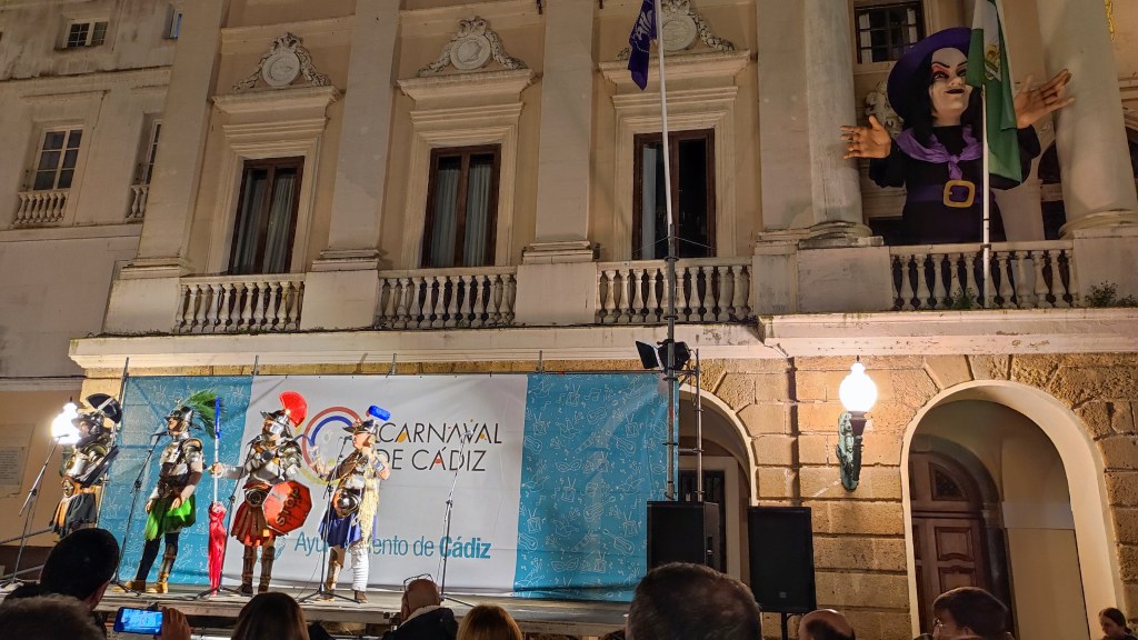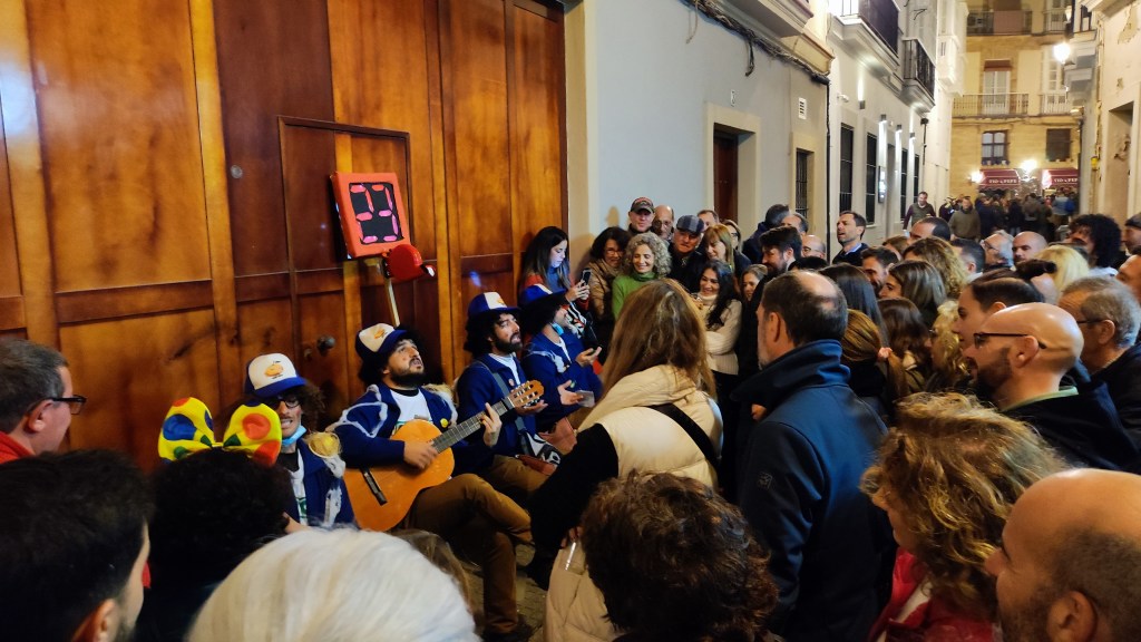 Noche de ilegales en el barrio del Pópulo. Excelente ambiente. Eso si, lo de las batallas de coplas hacen justicia a su nombre desde luego porque al menos anoche se hacía difícil poder entender algo de lo que cantaban las agrupaciones convirtiéndose aquello en una auténtica lucha. No es que no vocalizaran ni mucho menos. Pero la gran afluencia de un público que va a lo que va menos a escuchar impedía en muchas ocasiones enterarte bien. Para colmo que dos agrupaciones estén tan pegadas no sería ningún problema si se turnaran a la hora de cantar como buenos compañeros. Sin embargo no pasa nada de eso y a menudo uno tiene que hacer esfuerzos sobrehumanos para prestar atención a la agrupación que tienes enfrente pese a que justo a unos metros la otra también éste cantando. A ver si hacemos caso a eso de «Amos a escucha» y ese ambiente que puede ser maravilloso no lo estropean aquellos que solo van por puro postureo ya sea para darle al pico o a empinar el codo exclusivamente.