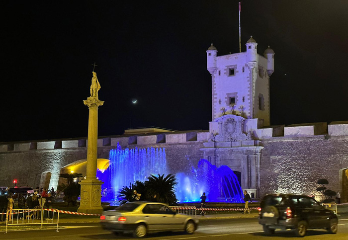 Más tarde de lo que en principio estaba previsto, la fuente de Puerta Tierra se ha encendido de manera oficial esta noche aglutinando a un buen número de ciudadanos dispuestos a ver el juego de luces del que tanto se hablaba desde el Consistorio. Así en el muro de agua del que ahora dispone la ciudad se han ver imágenes de la ciudad, de flamenco, Semana Santa, de Carnaval o del Cádiz CF. El espectáculo ha durando poco menos de diez minutos. Desde ahora la fuente tiene previsto diferentes espectáculos dedicada a cada una de las festividades que se celebran en Cádiz a lo largo del año.