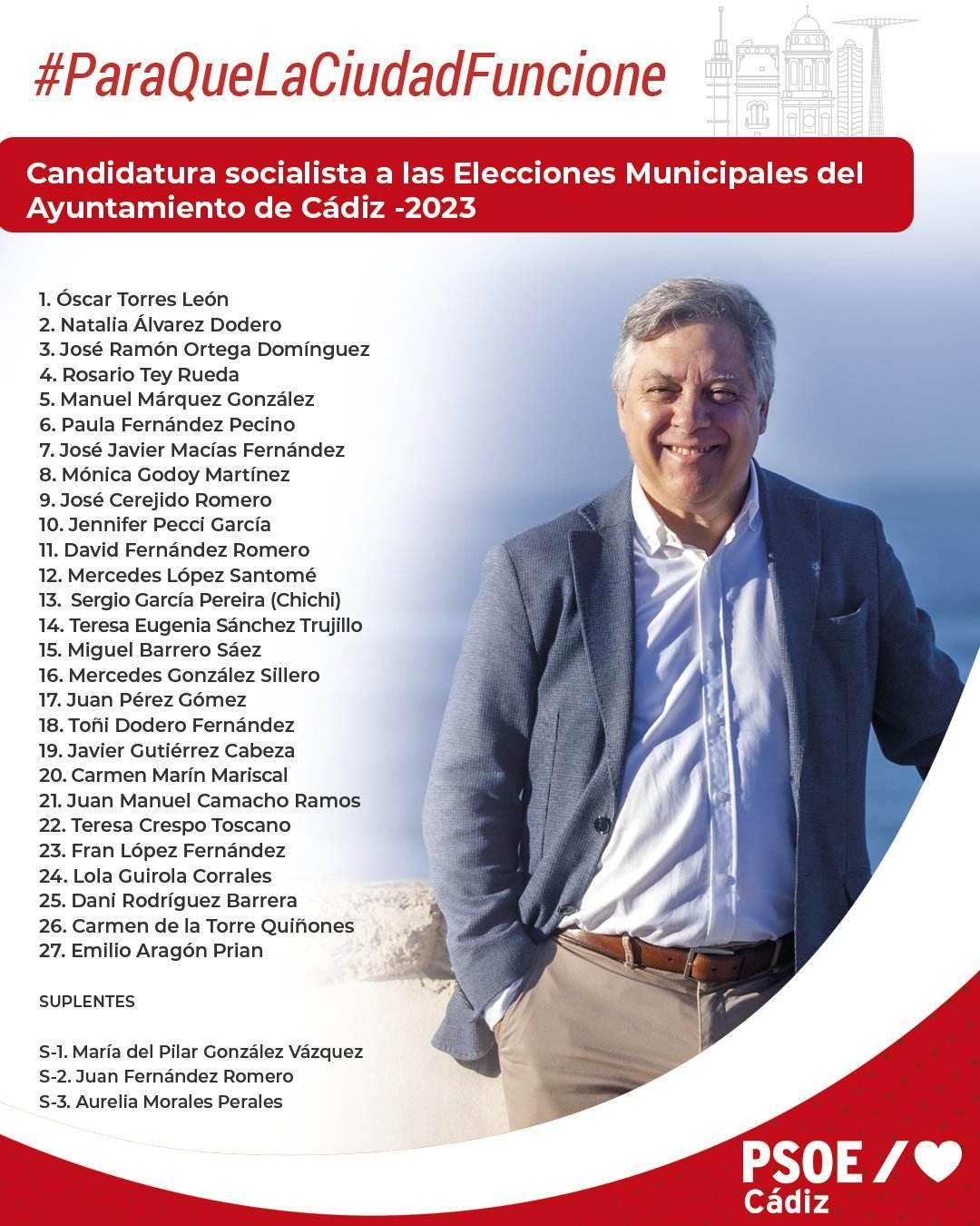 Efectivamente la lista mantiene nombres como los de Lola Cazalilla en el tres, Carlos Paradas en el cuatro, Lorena Garrón en el cinco, Demetrio Quirós en el 6, la debutante llegada de Izquierda Gaditana Laura Cubedo en el 7, Montemayor Mures, actual concejala en el 8, procedente de Izquierda Gaditana, Vanessa Sibón, profesora de Geografía e Historia y actual consejera en Emasa ocupa el puesto número 9 y en el 10 José Ramón Páez, actualmente en el Gobierno.